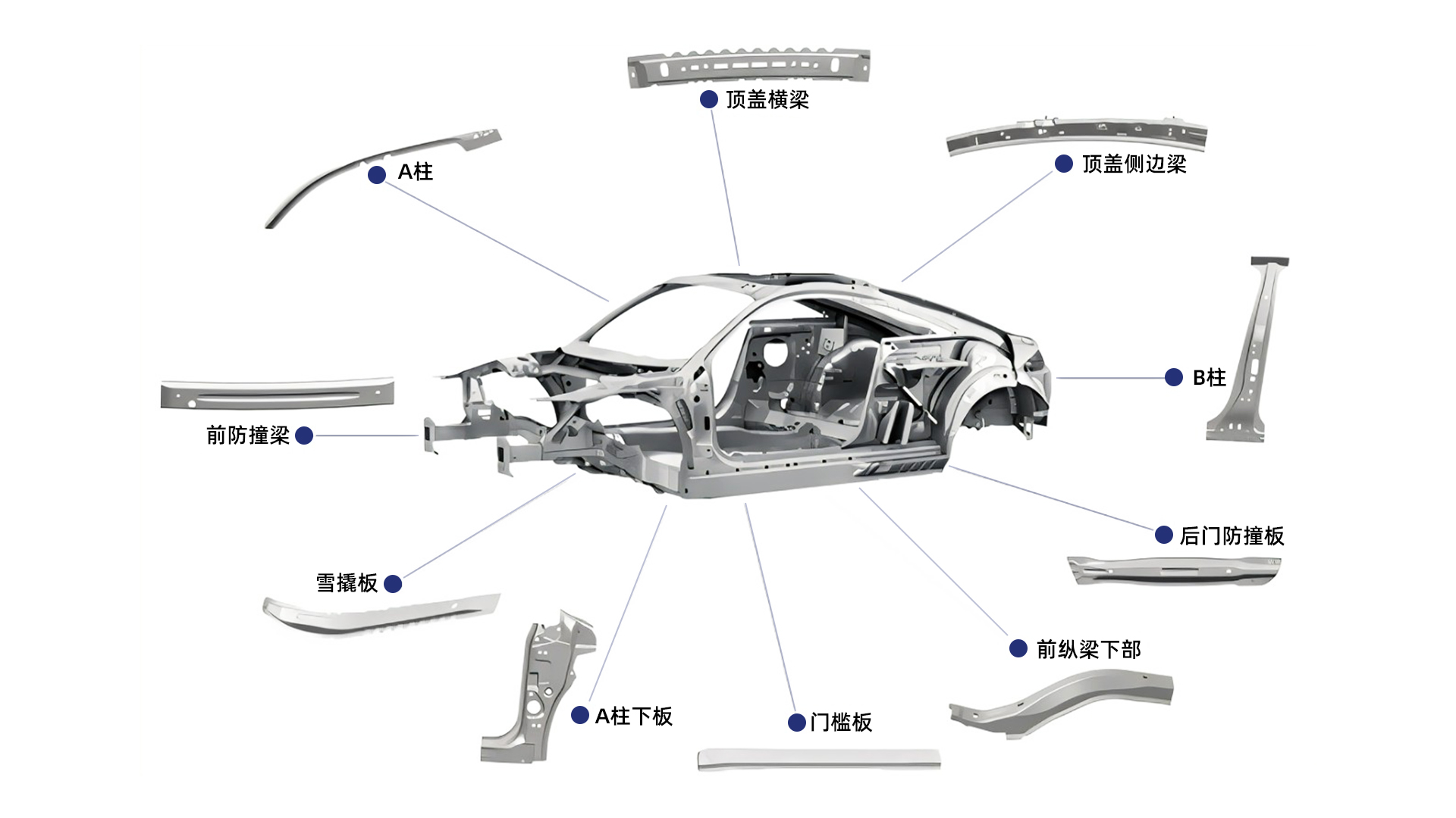 可應用于汽車A/B柱、前后防撞梁、縱梁、座椅滑軌、門檻加強板等幾十種汽車零件的加工。