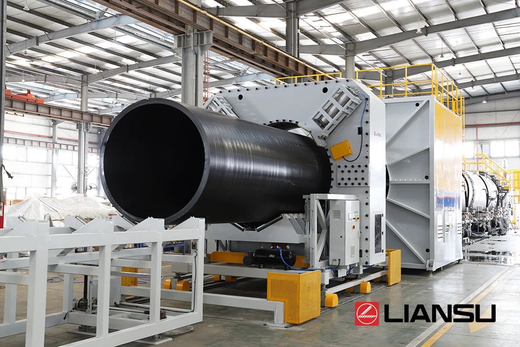 近日聯(lián)塑機(jī)器順利交付長(zhǎng)達(dá)70多米的實(shí)壁管擠出生產(chǎn)線(xiàn),這是聯(lián)塑機(jī)器在拉美地區(qū)銷(xiāo)售的第一條2米HDPE實(shí)壁管擠出線(xiàn)。眼前這條可擠出2米直徑HDPE實(shí)壁管的生產(chǎn)線(xiàn),是聯(lián)塑機(jī)器的得意之作。目前鮮少塑機(jī)企業(yè)能夠?qū)崿F(xiàn)特大口徑HDPE管材生產(chǎn)裝備制造。