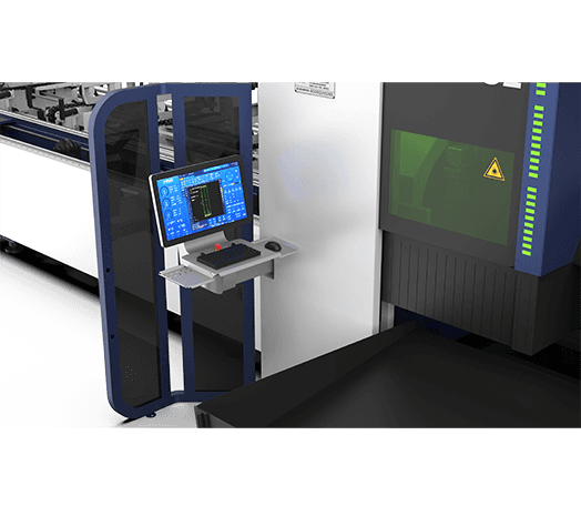 藍光對管材進行掃描,自動尋找管材中心點,提升切割精準度。
